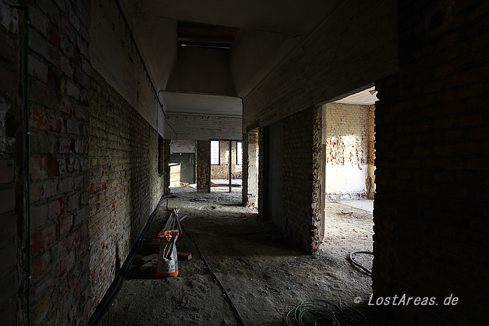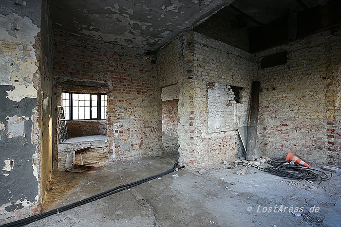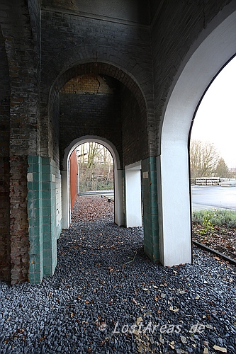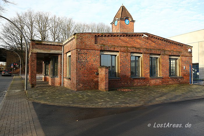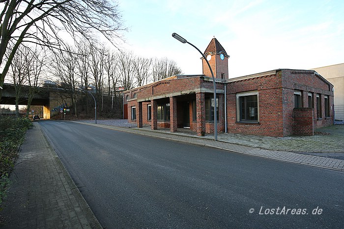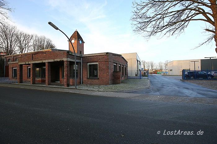 Der Schacht 5 der Zeche General Blumenthal wurde 1904 in Recklinghausen am Stuckenbusch geteuft. Bei 316m Teufe erreichte Blumenthal 5 das Karbon. Die Inbetriebnahme des Schachtes erfolgte 1905, nachdem bei 390m Teufe die 1. Sohle und bei 496m die 3. Sohle angesetzt waren. 1906 wurde das Baufeld des Bergwerks General Blumenthal 1/2 auf der 1. Sohle mit Schacht 5 durchschlägig. Heute befinden sich die Tagesanlagen des Schachtes General Blumenthal 5 in Besitz des Tiefbau-Unternehmens Tillmann & Co. Die Gebäude bleiben erhalten, werden renoviert und umgenutzt. Dezember 2015 |