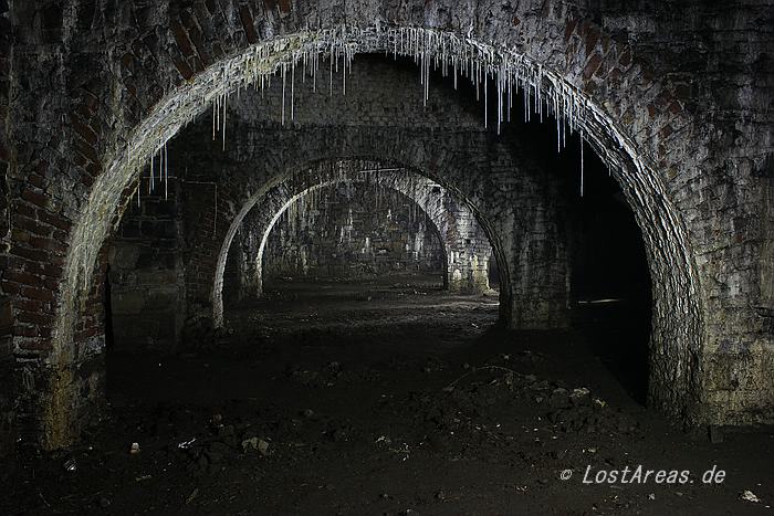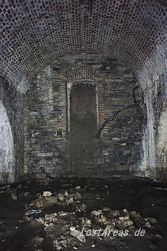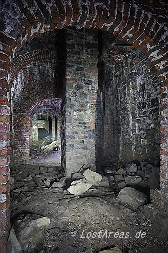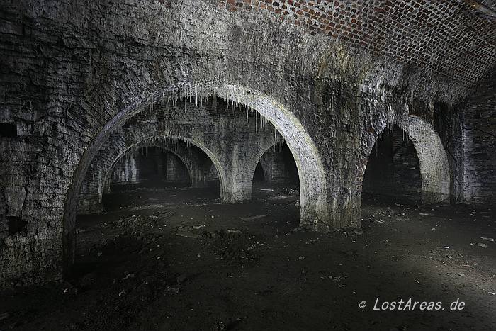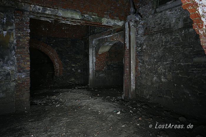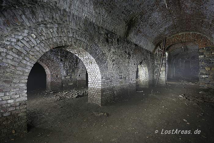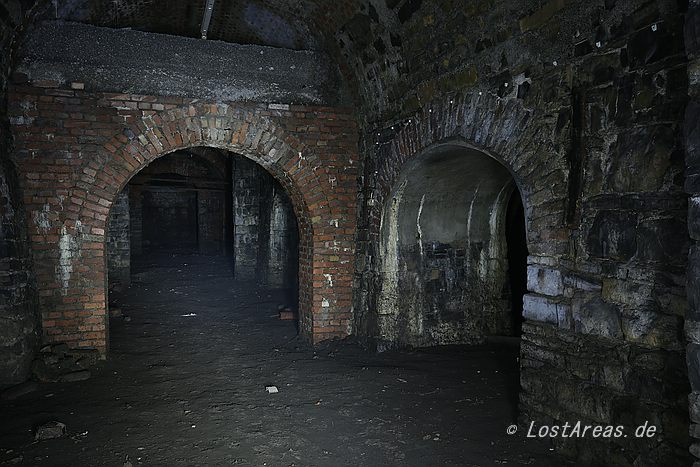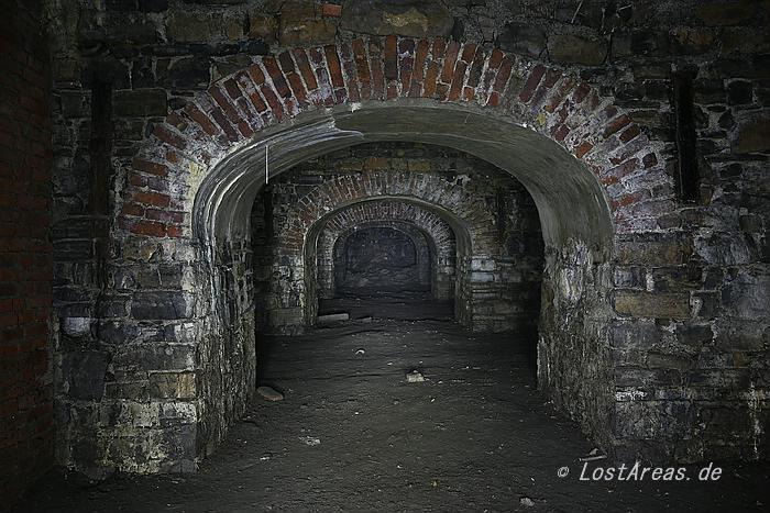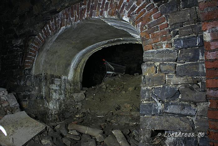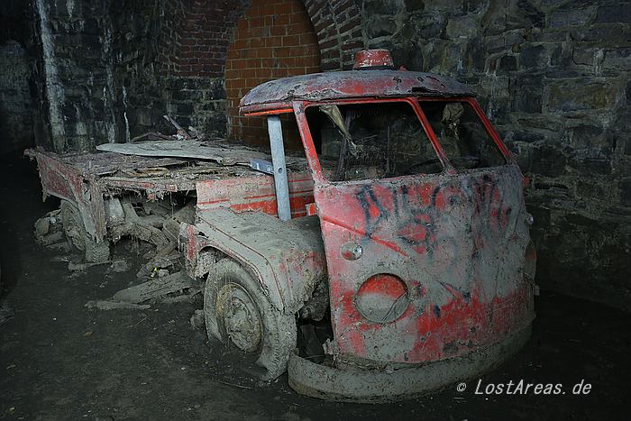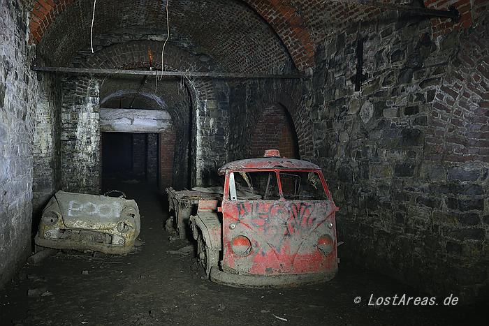 Der durch Iserlohn fliessende Baarbach wurde von 1888 bis 1891 überbaut, um den Bau erster Strassen zu ermöglichen. Im Rahmen dieser Arbeiten entstanden die Baarbachkatakomben, die sich Heute unter einem Teil der Innenstadt erstrecken. Die grosszügige Überbauung des idyllisch anmutenden Rinnsals Baarbach erklärt sich bei starken Regenfällen von selbst - der Baarbach wird in Sekunden zum reissenden Fluss,, der alles aus den Katakomben spült. Diese Erfahrung musste ein Championzüchter in den 80ern machen, der letztendlich nach einigen Überschwemmungen sein Vorhaben aufgab. Letzte Relikte der Championzucht sind 2 zurückgelassene Fahrzeuge - ein VW T1 sowie ein Goggomobil Isar. |