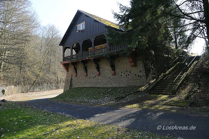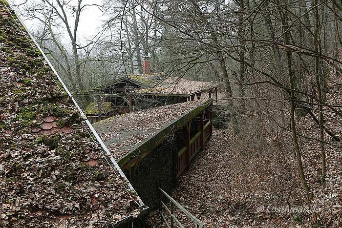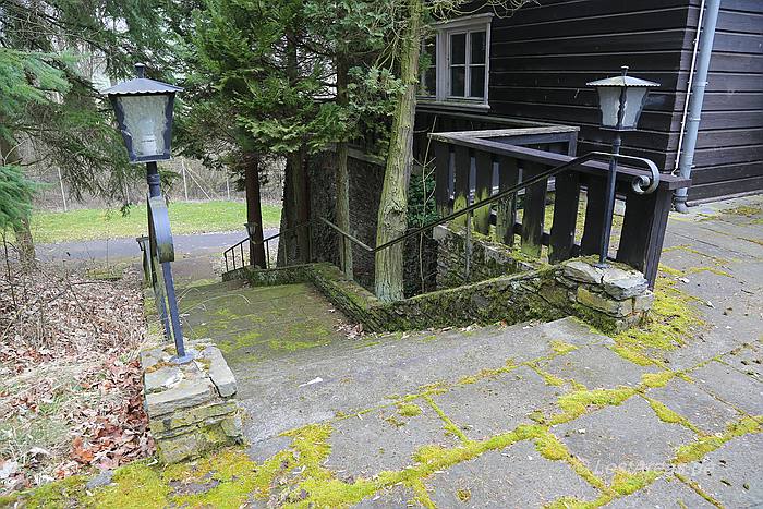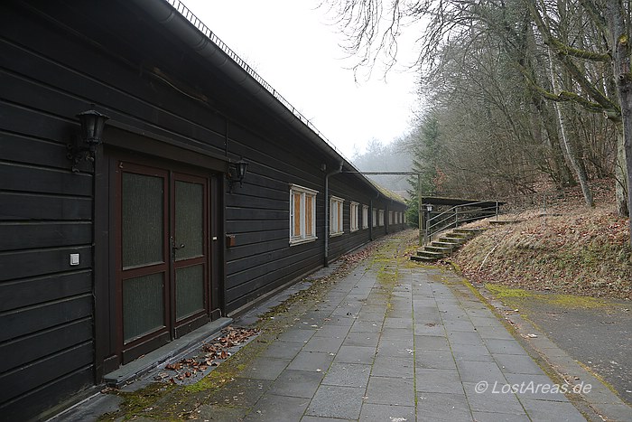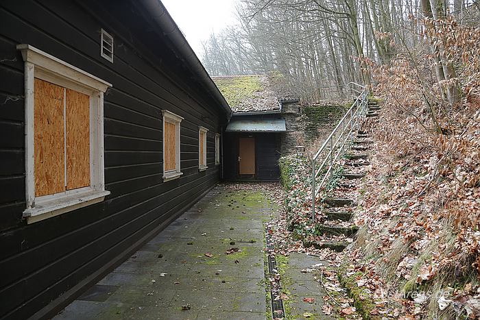 Organisation Todt. Adlerhorst war ursprünglich als Befehlsstelle zur Invasion Englands vorgesehen - Hitler zog jedoch für diese Aufgabe das FHQ Felsennest in Münstereifel-Rodert vor. Adolf Hitler bezog das Führerhauptquartier Adlerhorst von 11. Dezember 1944 bis 15. Januar 1945 im Rahmen der Ardennenoffensive - zuvor hatte Schloss Ziegenberg bereits dem Oberbefehlshaber West als Hauptquartier gedient. Am 6.1.1945 kam es zu einem Vorfall in Langenhain-Ziegenberg. Ein einzelner allierter Bomber überflog in geringer Höhe den Ort. Möglicherweise wurde die vorgeschriebene Verdunkelung nicht eingehalten, oder mangelhaft abgeblendete Stabsfahrzeuge lenkten die Aufmerksamkeit der Flugzeugbesatzung auf das FHQ Adlerhorst. Der Bomber warf eine einzelne Luftmine ab - sämtliche Häuser des Ortes wurden abgedeckt, mehrere Häuser brannten und 4 Bewohner von Langenhain-Ziegenberg kamen ums Leben. Die Bunkeranlagen selbst wurden nicht weiter beschädigt. |